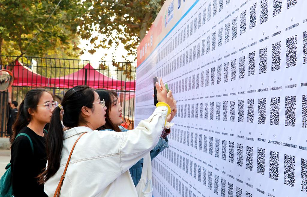 此次招聘会泰安校区引入了“小贤才”校园招聘平台进行招聘活动宣传推介,依托此平台,泰安校区还专门设计了开云·体育泰安校区校园招聘管理系统,实时统计用人单位参会情况,做到了对用人单位具体情况的精准数字化掌握。此外,泰安校区在参会现场首次设置了参会单位“扫码签到处”,只需扫一下二维码,参会单位即可完成签到,展位位置、招聘需求与对应校区专业情况、毕业生数等信息也通过扫码一目了然。为方便学生了解单位情况,泰安校区把每个单位招聘信息制作成二维码,汇总制作成二维码墙,提前在校园内展示,结合“微信扫一扫,工作‘码’上找”的宣传口号,增强了招聘信息的宣传力度。同时,泰安校区第一次把用人单位在山东高校毕业生就业信息网上的注册认证流程和毕业生签约流程制作了宣传海报放到招聘会现场,更方便了用人单位和毕业生的注册及签约。