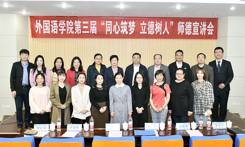 外国语学院一直重视师德师风建设,在开展师德师风建设方面,结合“不忘初心、牢记使命”主题教育,不断创新教育形式,组织动员广大教师发现身边的榜样,以身边的人,说身边的事,以身边的榜样教育影响身边的人,在总结前两届宣讲会的基础上,成功推出了第三届“同心筑梦 立德树人”师德宣讲活动,引导教育广大老师“不忘教育初心、勇担育人使命”,自觉以习近平新时代中国特色社会主义思想武装自己,争做“四有”好老师。(记者:信永华 责编:徐展)