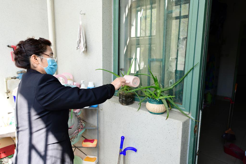 4月23日起,学生公寓管理服务中心上线“阿姨来帮忙”云服务业务,包括宿舍通风、绿植浇水、垃圾清理、晾晒衣物等四项服务。109位宿管阿姨和百余名辅导员把提出需求的学生被褥一床一床搬至楼下晾晒。