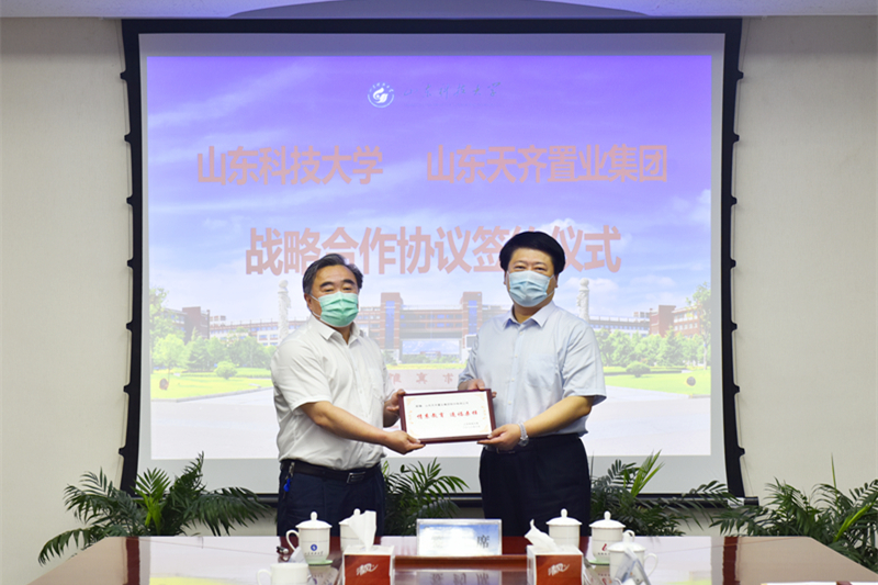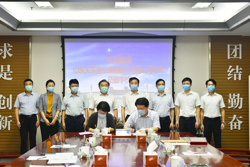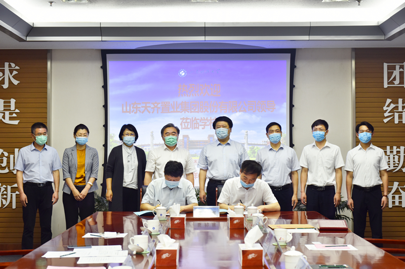 6月23日,开云·体育与山东天齐置业集团股份有限公司举行战略合作协议签约暨教育发展基金捐赠仪式。校长姚庆国、副校长李玉霞,山东天齐置业集团董事长田茂军、总经理吕茂森出席签约仪式。