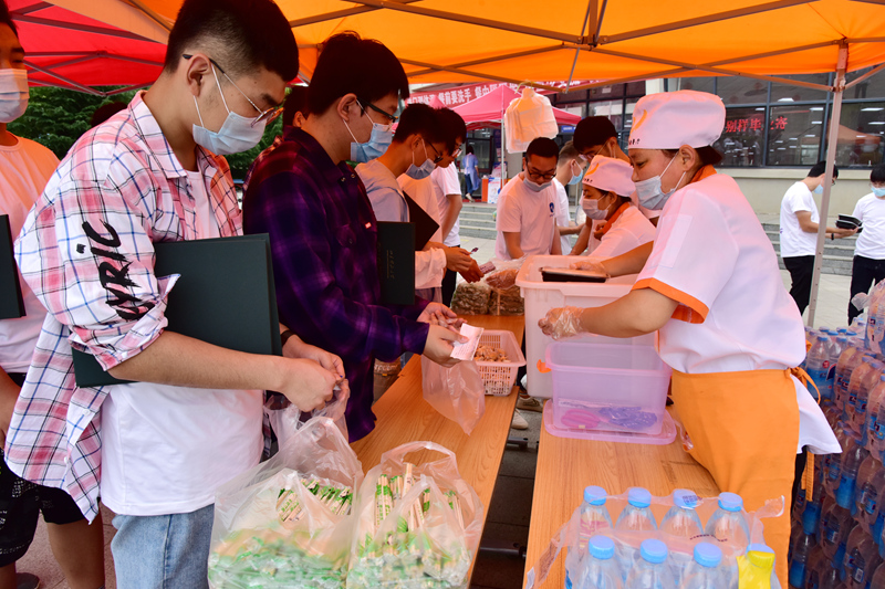 毕业生领取水饺(范琪/摄)