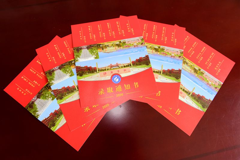 记者在现场看到喜庆的新版本科录取通知书已新鲜“出炉”。8月底,录取通知书、新生报到须知等,将会陆续送到考生手中。录取通知书整体设计以红色作为主体,“录取通知书”等文字为烫金大字,体现出金榜题名的喜庆。封面主图为青岛校区泰山广场,封面上还有青岛、泰安、济南校区等三校区标志性景观照片以及科大校训、校风等内容,让新生提前感受“江北最美校园”的美丽和内涵。