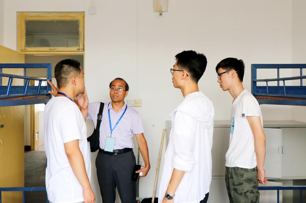 泰安校区辅导员到宿舍与新生交流