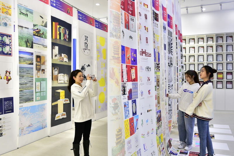 学生观看艺术设计作品(韩洪烁/摄)