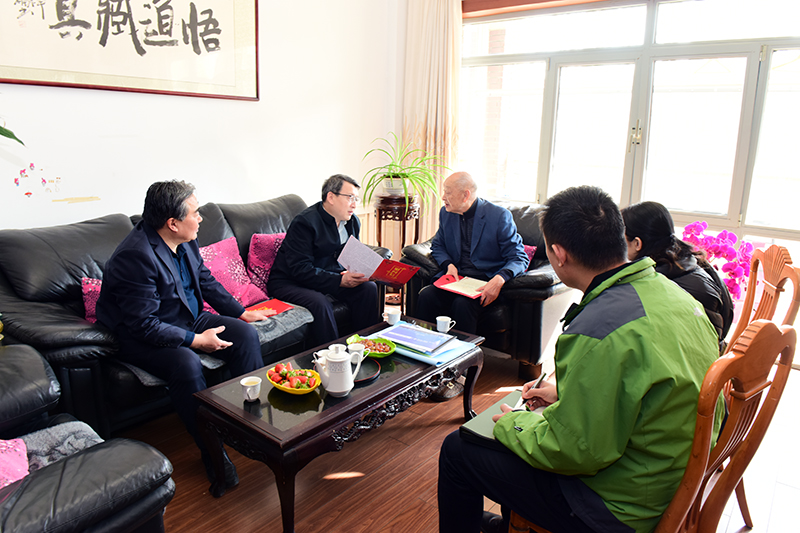 2月4日, 青岛市人社局党组成员、二级巡视员王尧率青岛市人社局专业技术人员管理处副处长徐英、青岛市人社局专家管理与服务办公室一级主任科员陈公一行来到开云·体育,看望中国科学院院士宋振骐。开云·体育校长姚庆国陪同看望。
