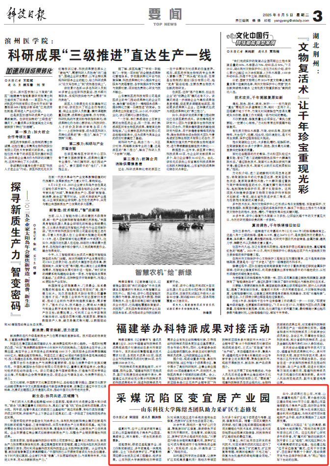 如今,该成果已在山东、河南、山西、新疆等地推广应用,累计盘活沉陷区建设用地3000平方公里,建成山东蓝海领航电子商务产业园、临沂职业学院新校区(高都校区)等34处采煤沉陷区建设利用示范基地,为相关城市项目落地和产业升级、经济发展提供了土地资源支撑。