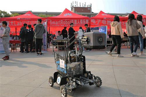自动化学院SmartRobot机器人协会的招新展台前,聚集了很多热爱科技创新的学生。现场,一名“围观”学生告诉记者:“我从小就对科技产品感兴趣,经常会把家里损坏的家电拆开研究,还亲手修好过手机,我觉得科技创新就是我人生的追求。”他认真观看了由协会成员自主研制的机器人,深受感染,报名参加了这个自己梦寐以求的“组织”。SmartRobot机器人协会负责人边操控着工程机器人边说:“通过协会的一系列活动,我们希望为喜爱机械设计、机器人设计研究的同学搭建交流的平台,让更多同学感受科技的魅力。”