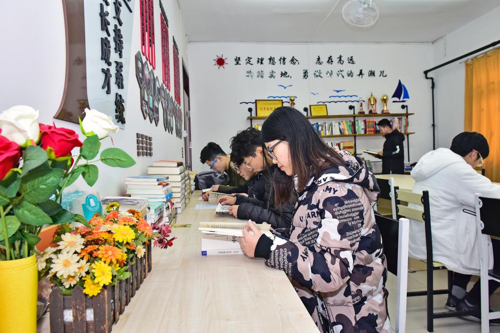 12月25日,在C9号公寓楼二层连廊的“寓建坊”里,十几名学生正在学习,这是经管学院在公寓楼内设置的学生读书、自习、交流讨论的场所,“寓建坊”内有书架,整齐地摆放着上千册专业书、课外书……