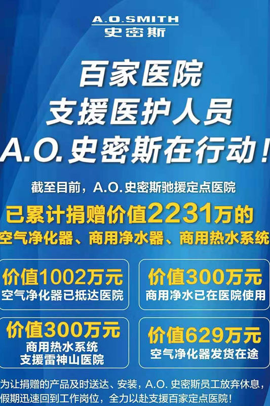 A.O.史密斯公司捐赠价值2231万元设备