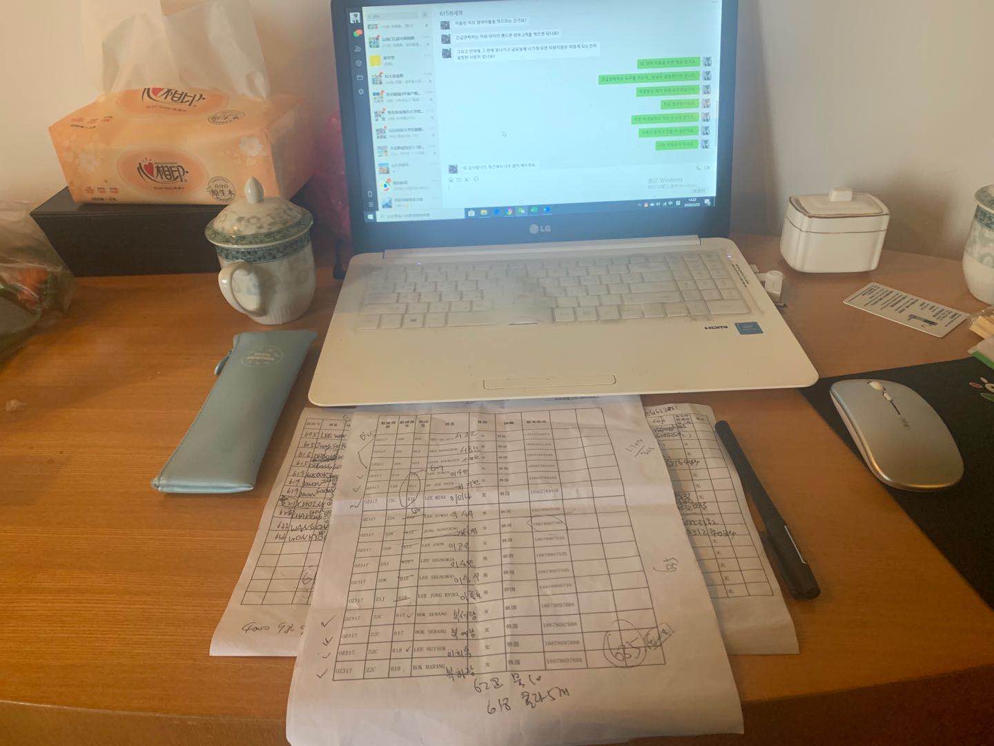 3月10日,刘晓丹为20名韩国人提供翻译工作;3月12号晚上七点半,酒店又迎来了韩国人11人。这是她前前后后共服务的31人。