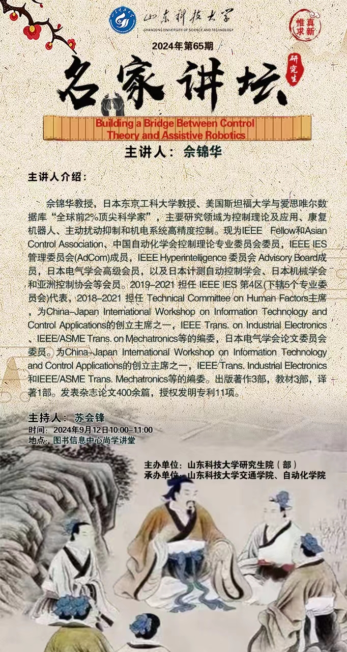 “名家讲坛”2024年第65期:Building a Bridge Between Control Theory and Assistive Robotics(总959期)