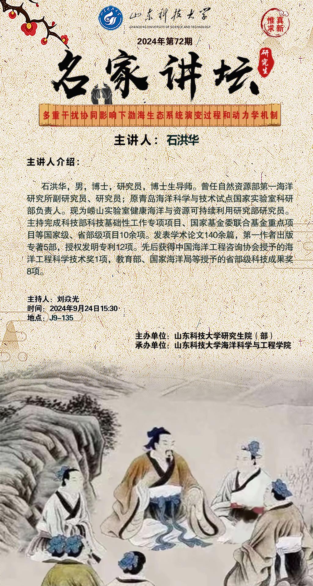“名家讲坛”2024年第72期:多重干扰协同影响下渤海生态系统演变过程和动力学机制(总966期)