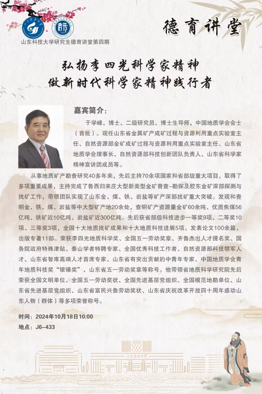研究生“德育讲堂”第四期:弘扬李四光科学家精神 做新时代科学家精神践行者