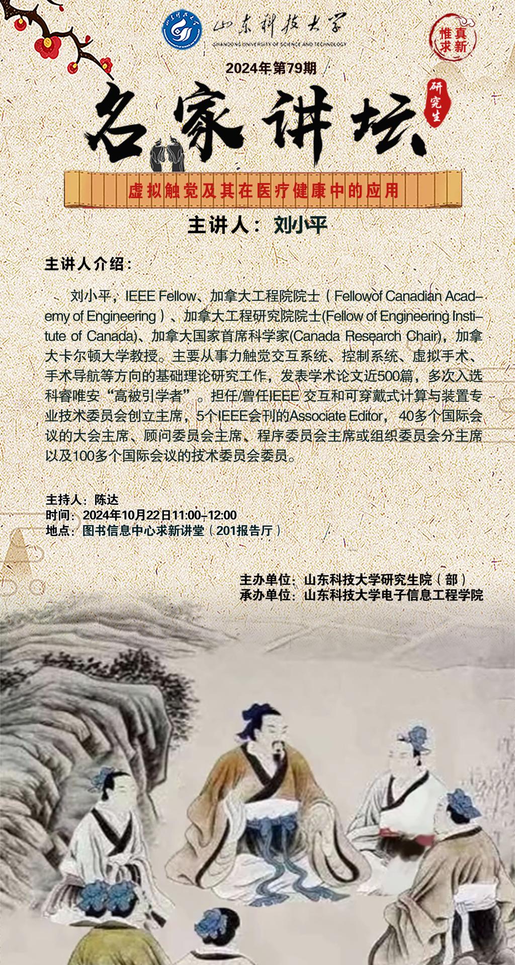 “名家讲坛”2024年第79期:虚拟触觉及其在医疗健康中的应用(总973期)