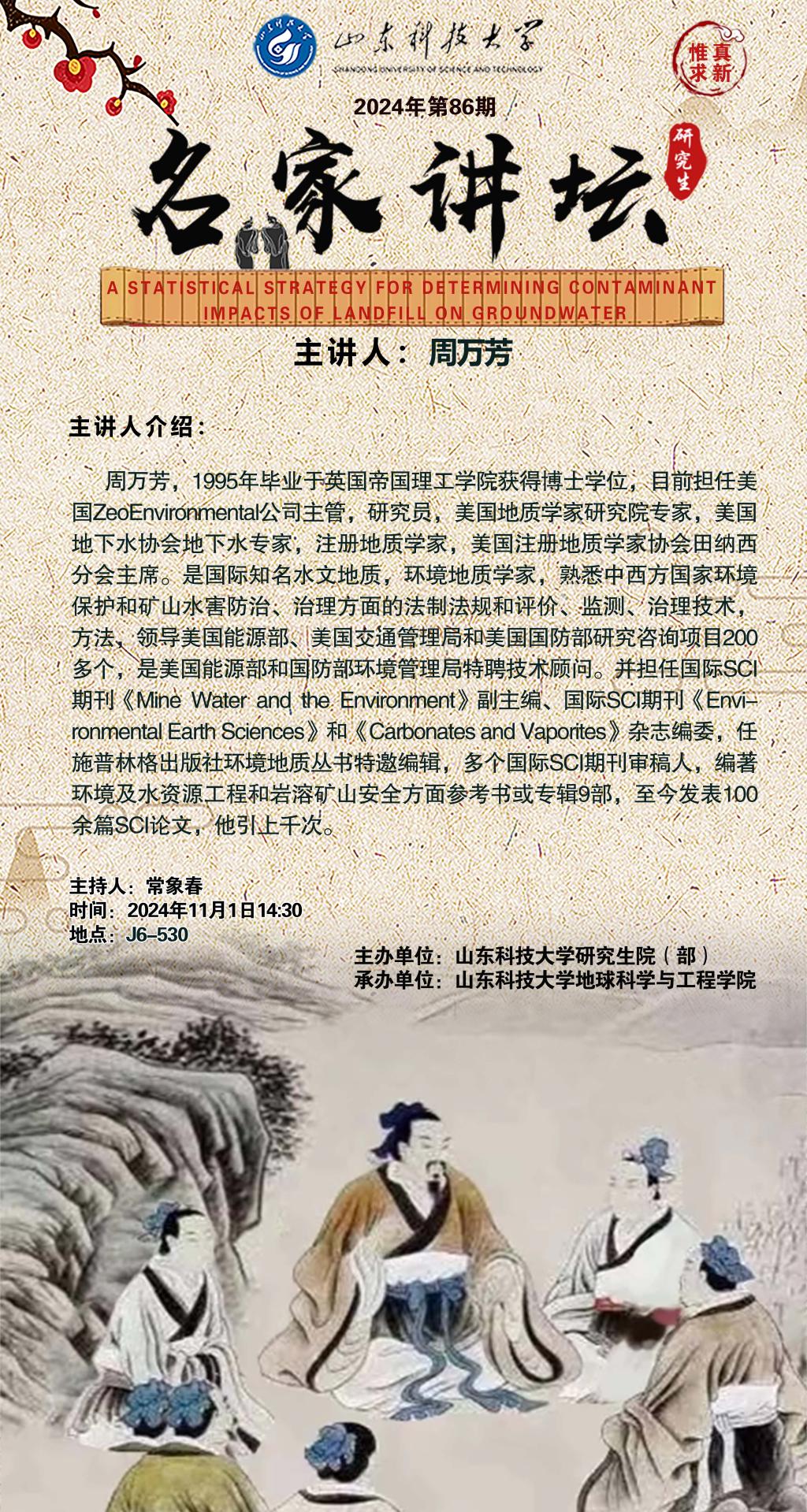 “名家讲坛”2024年第86期:A STATISTICAL STRATEGY FOR DETERMINING CONTAMINANT IMPACTS OF LANDFILL ON GROUNDWATER(总980期)