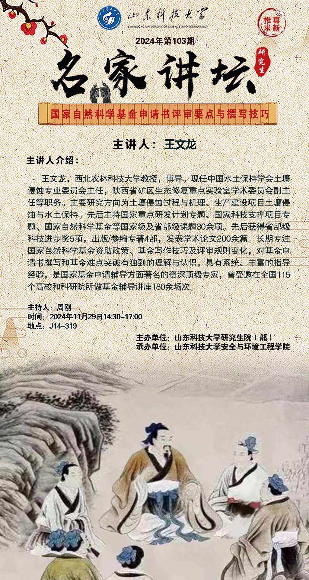 “名家讲坛”2024年第103期:国家自然科学基金申请书评审要点与撰写技巧(总997期)