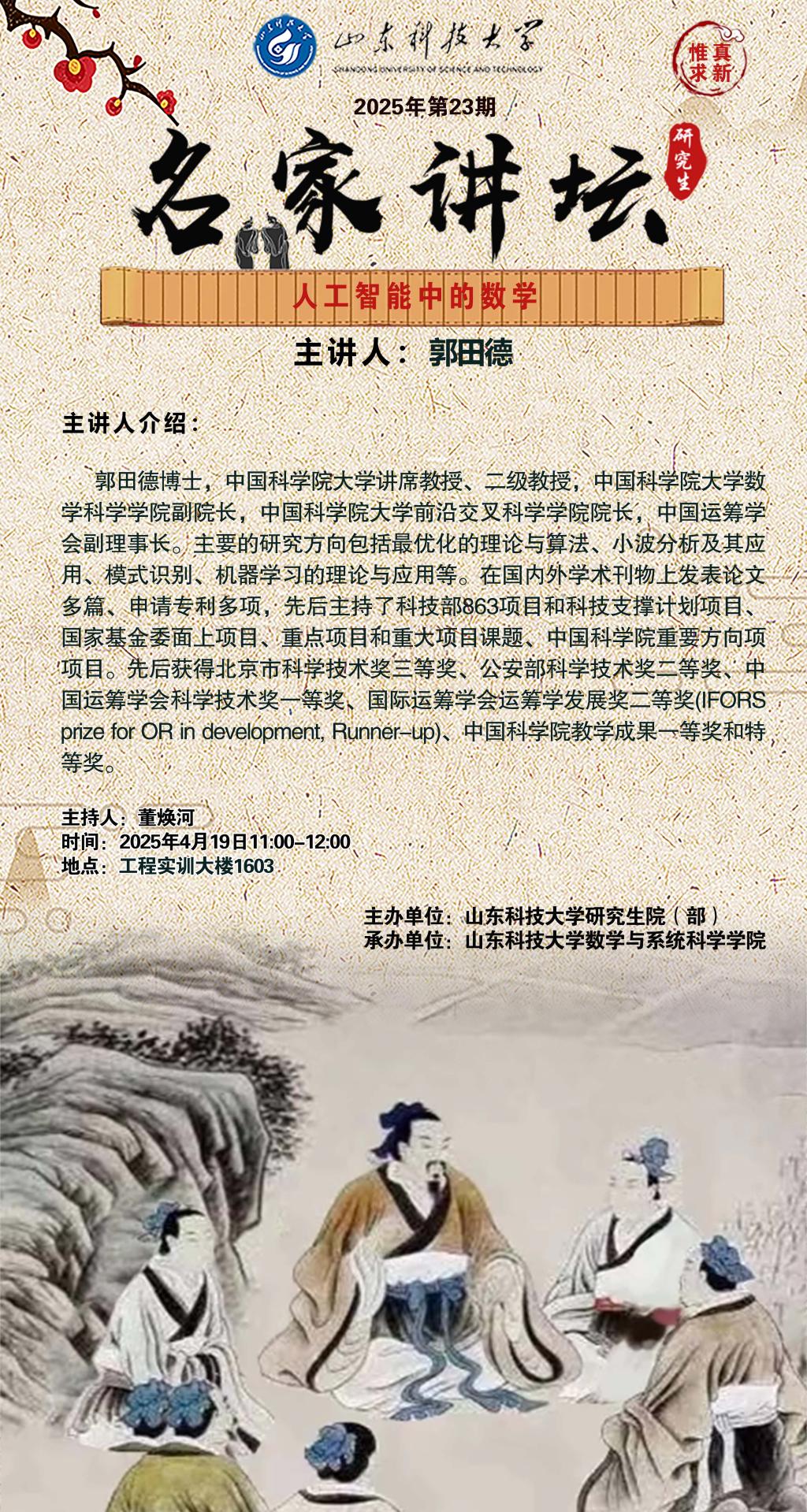 名家讲坛2025年第23期:人工智能中的数学(总1028期)