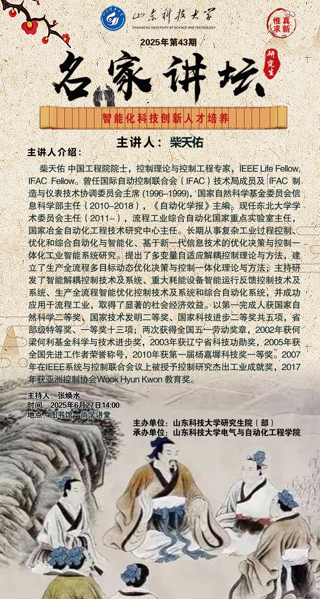 “名家讲坛”2025年第43期:智能化科技创新人才培养(总1048期)