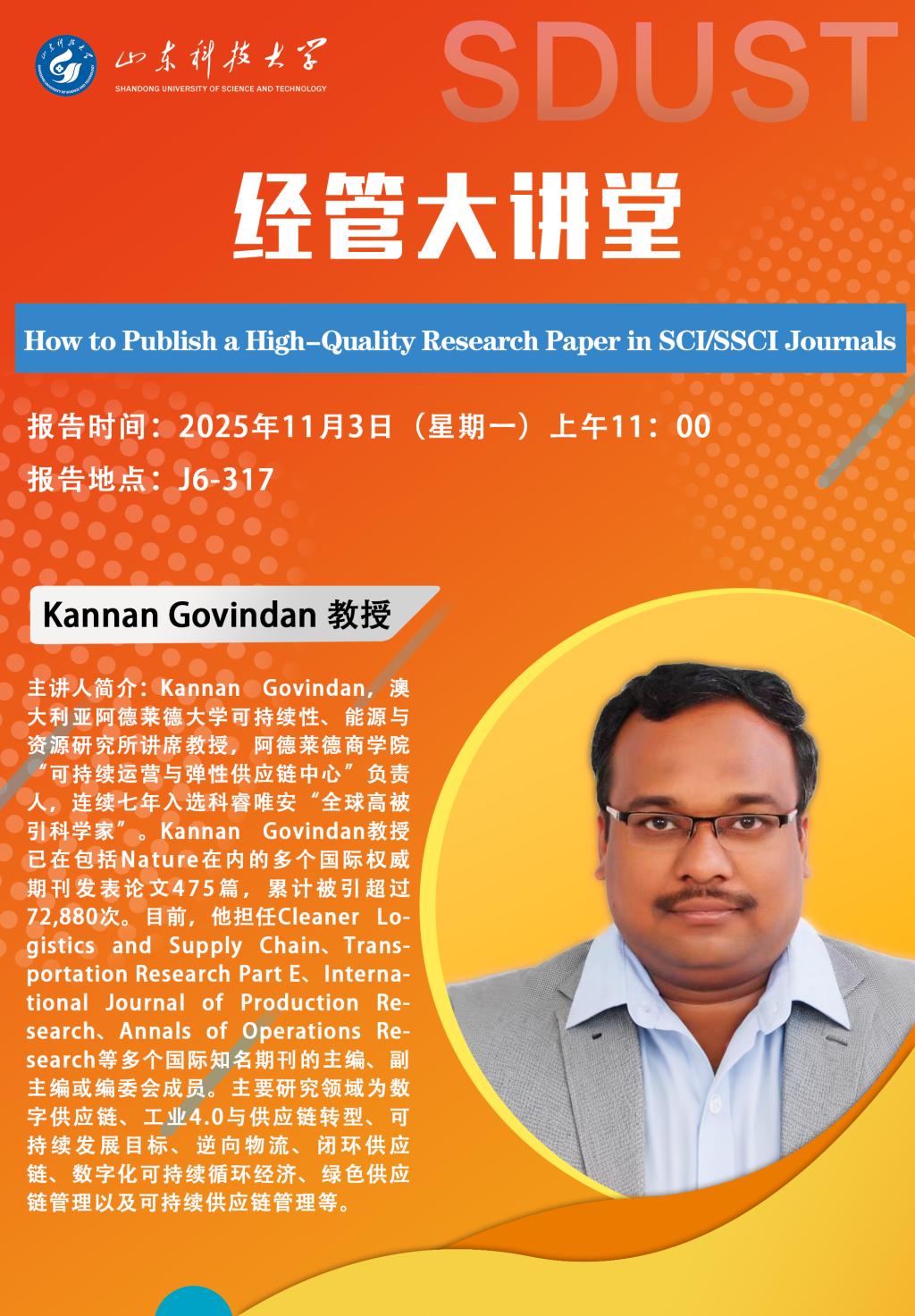 经管大讲堂:How to Publish a High-Quality Research Paper in SCI/SSCI Journals