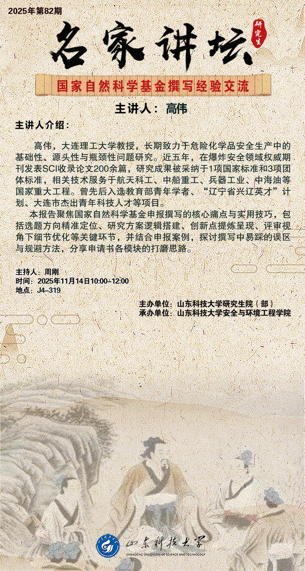名家讲坛2025年第82期:国家自然科学基金撰写经验交流(总1087期)
