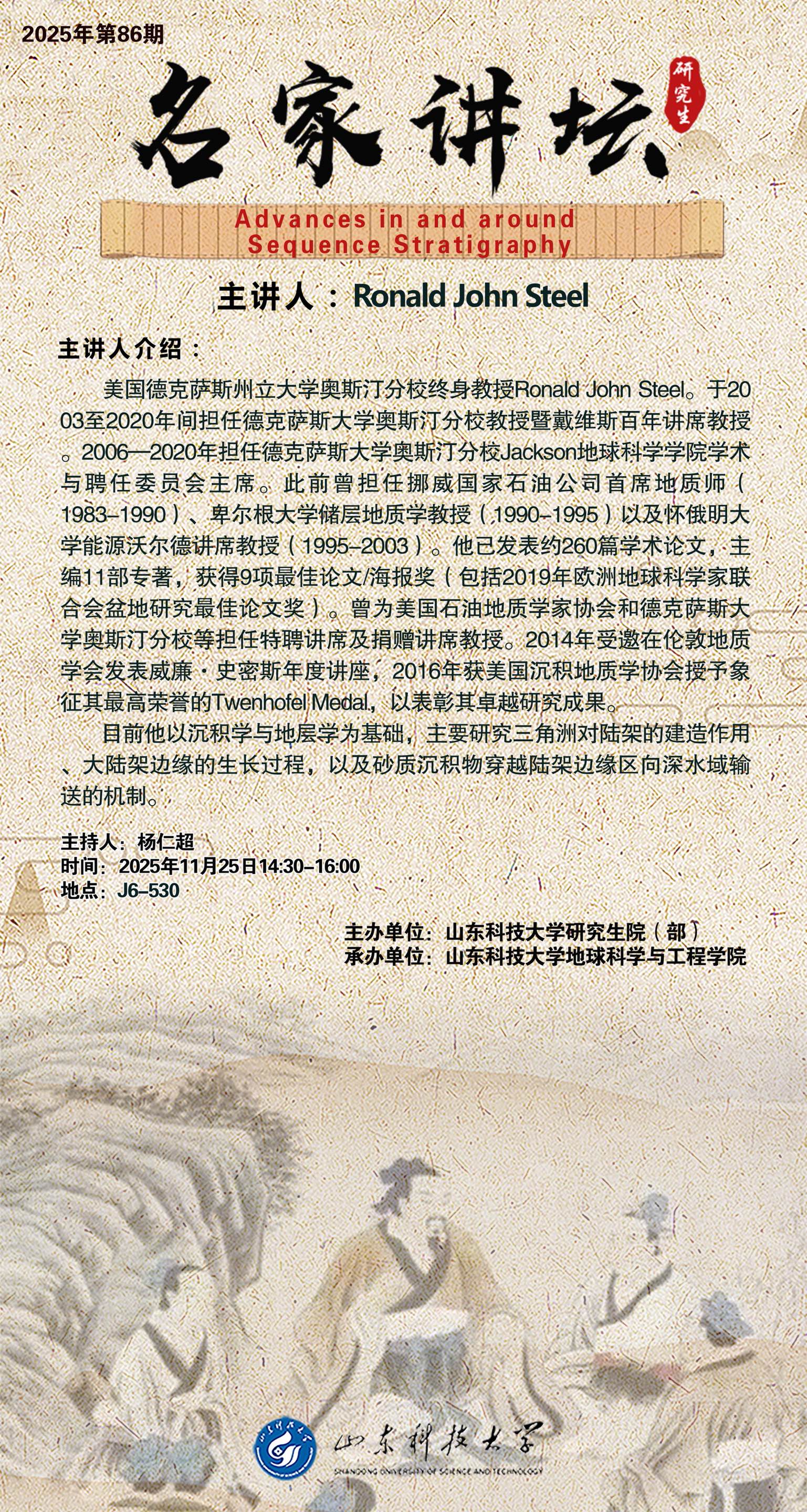 “名家讲坛”2025年第86期:Advances in and around Sequence Stratigraphy(总1091期)