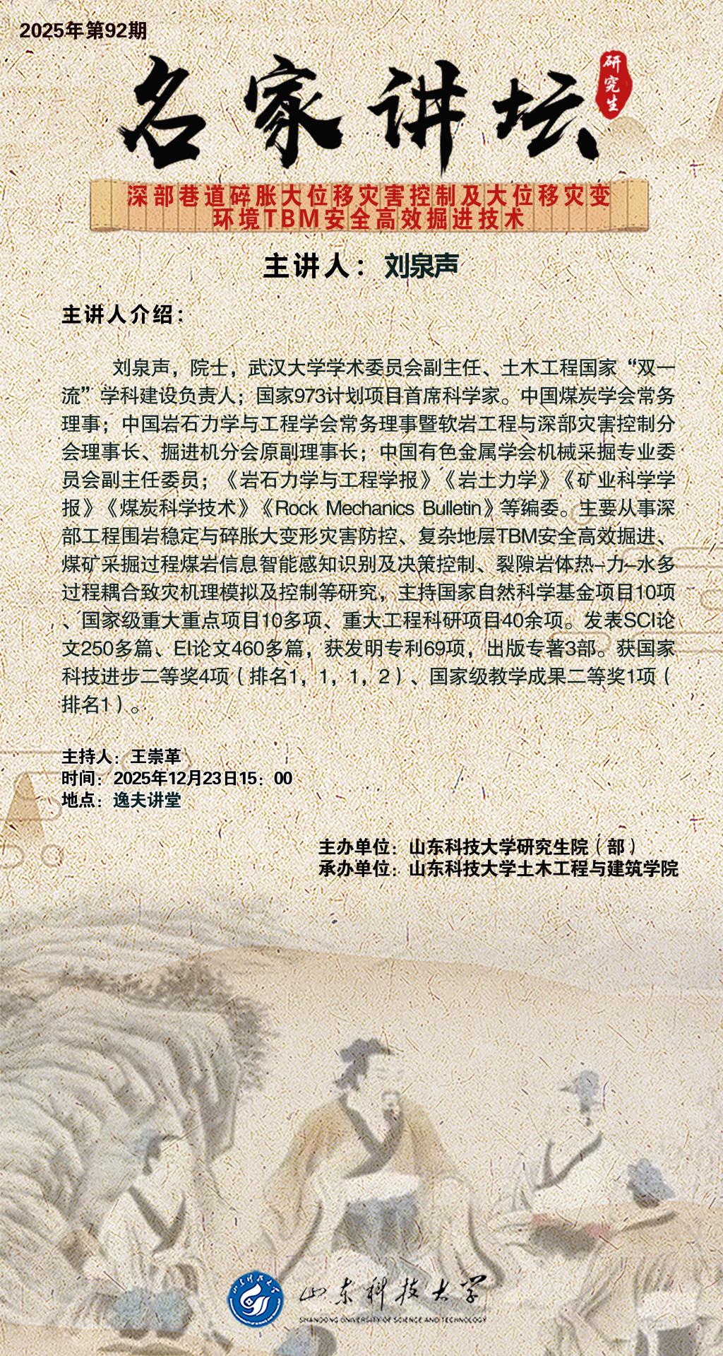 “名家讲坛”2025年第92期:深部巷道碎胀大位移灾害控制及大位移灾变环境TBM安全高效掘进技术(总1097期)