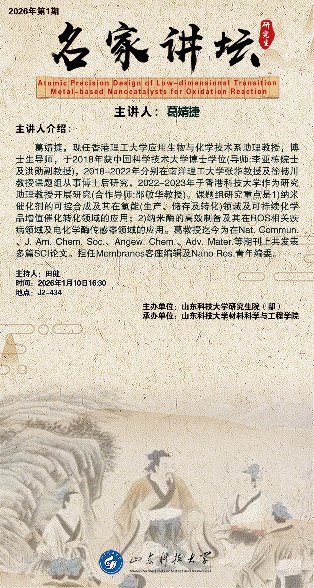 “名家讲坛”2026年第1期:Atomic Precision Design of Low-dimensional Transition Metal-based Nanocatalysts for Oxidation Reaction(总1103期)