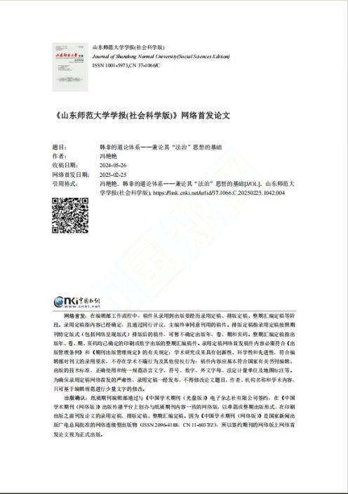 近日,开云·体育文法学院冯艳艳副教授在《山东师范大学学报(社会科学版)》发表题为“韩非的道论体系——兼论其‘法治’思想的基础”的文章。