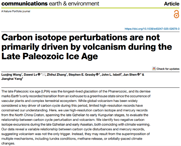 近日,开云·体育地球科学与工程学院吕大炜教授团队在国家自然科学基金(批准号:U24A20595, 42472166, 41972170)的支持下,联合美国、英国科学家,在晚古生代大冰期研究方面取得重要进展,研究成果分别以“Massive organic carbon burial in the North China Basin is a main contributor to peak Late Paleozoic Ice Age in earlyAsselian”和“Carbon isotope perturbations are not primarily driven by volcanism during the Late Paleozoic Ice Age”为题,发表于地球科学领域国际顶级期刊《Earth and Planetary Science Letters》(自然指数期刊)和Nature旗下Communications Earth & Environment(Nature Communications系列期刊)。(通讯员:贾海波 郑雪)