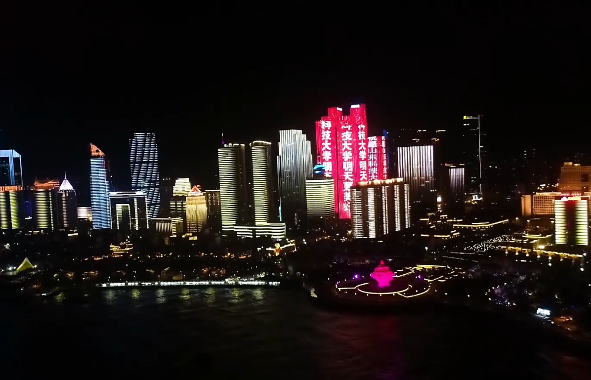 华灯璀璨,献礼山科大七秩校庆,青岛、泰安、济南三地灯光秀齐祝福